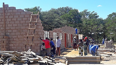 Not only were these measures more cost effective than having the project entirely handled by a building contractor, it offered much needed income to those living in the impoverished community, and taught the local people useful skills. Many people even volunteered to work, since they understood the importance of the project. In only 5 days, with about 50 local workers, and 3 experienced builders from Lupane, the area was cleared, and the walls of the two-room school building were erected.